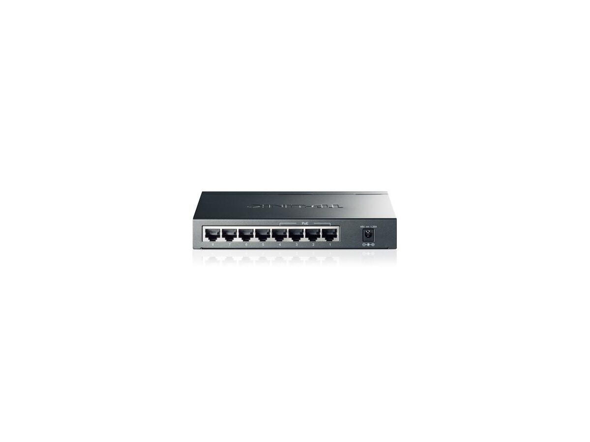 TP-LINK TL-SG1008P. Basic switching RJ-45 Ethernet ports type: Gigabit Ethernet (10/100/1000), Copper ethernet cabling technology: 1000BASE-T, 100BASE-TX, 10BASE-T. Networking standards: IEEE 802.3, IEEE 802.3ab, IEEE 802.3af, IEEE 802.3u, IEEE 802.3x. MAC address table: 8000 entries, Switching capacity: 16 Gbit/s. Colour of product: Grey, LED indicators: Status, Case design: Freestanding. Power consumption (typical): 53W